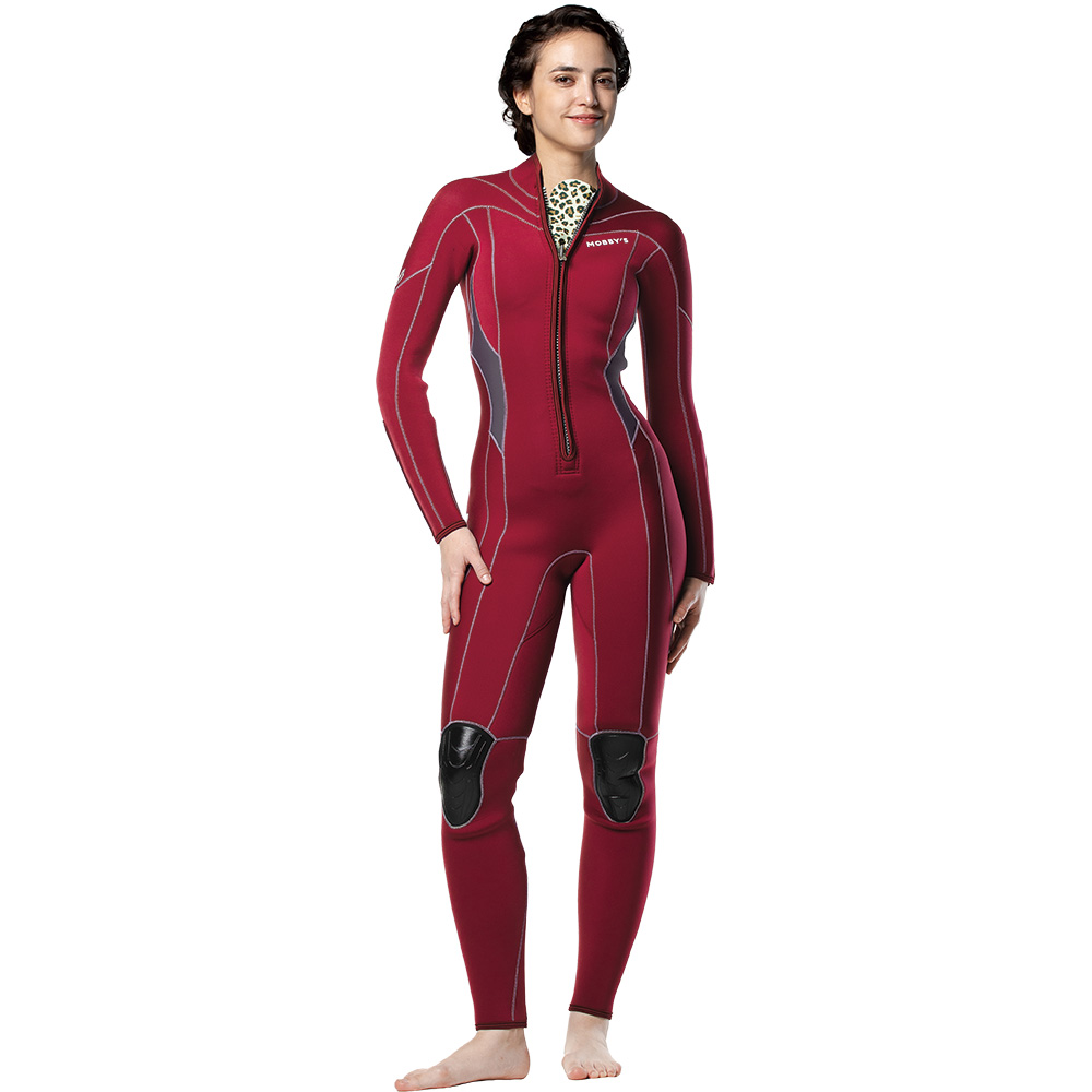 The front long-zip model for women divers comes standard with a wrist zip and an ankle zip for easy on/